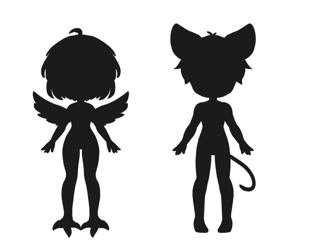 ➤ tails, horns, whiskers, toe beans, animal ears, fangs, retractable claws, unusual tongues, unusual pupils, etc.