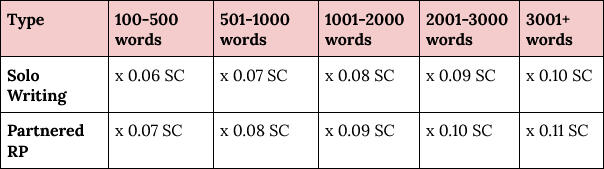 Soul Coins (SC) can be earnt through art, writing, and sometimes combat within the group. These coins serve as the primary currency in Paradise Lost. They can be used in the shops to purchase a variety of items. Soul Coins are being tracked per member, not OC. Earnt SC can be calculated using the art/writing calculator. However, if you prefer, SC can also be calculated manually.Rank Points can be earnt by completing specific event prompts. Unlike SC, they are tracked per OC, not per member.