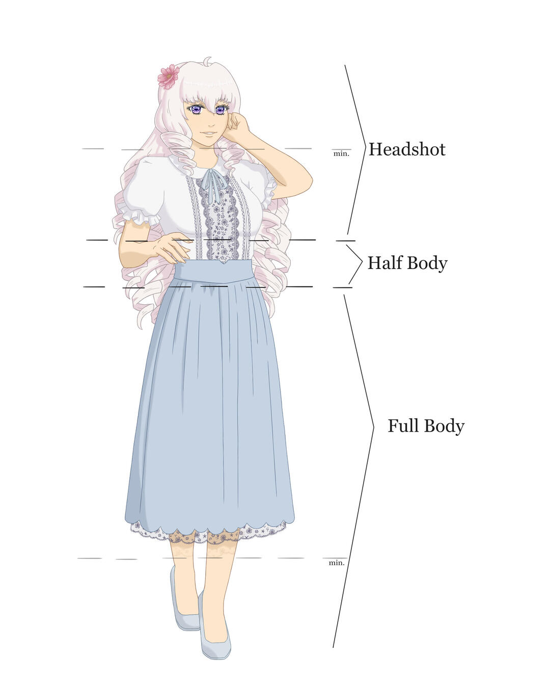 > min. requirement: coloured, cleaned up sketch of the halfbody or fullbody> you may use already existing art of your character as long as it fits the requirements and setting> you may use commissioned art, but you must have the artist's permission to use it in this way and credit them> you may use any font and colour you like as long as the info is readable> you may not change the backdrop of the fullbody art, you do may change the border colours